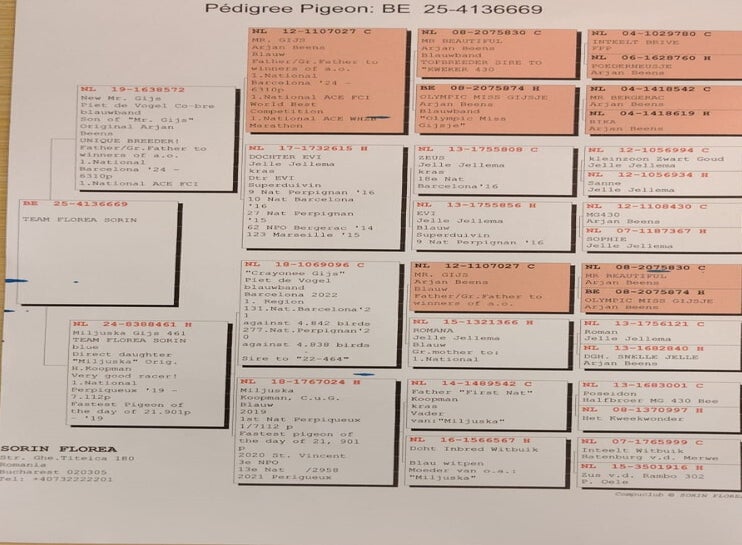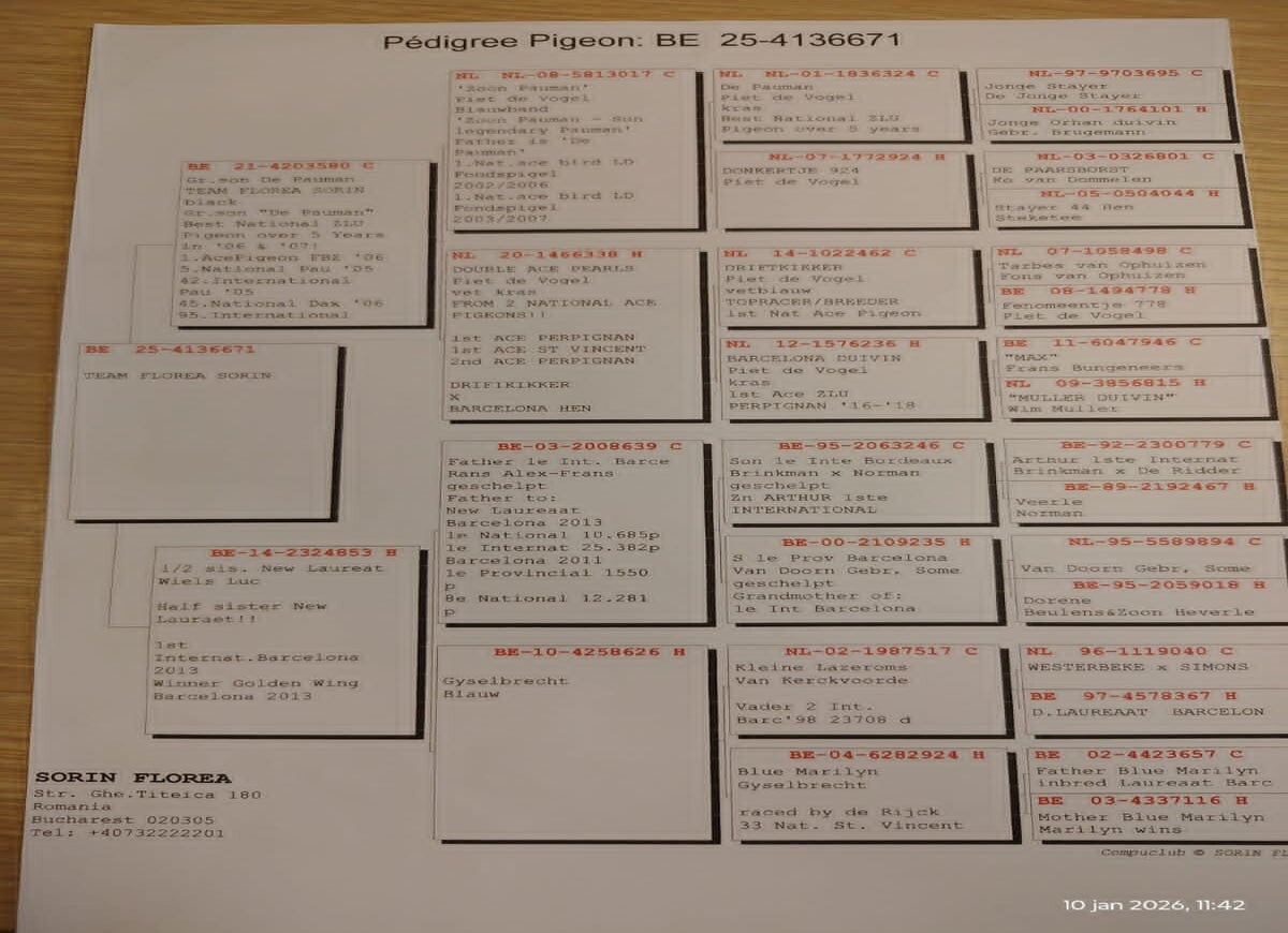 - Commerciële Waarde: Voor topracers is de stamboom een officieel bewijsstuk van afkomst. Winnende raceduiven met een sterke pedigree kunnen voor duizenden euro's geveild worden. De stamboom fungeert hierbij als een soort 'garantiebewijs' voor potentiële kopers die willen investeren in bewezen genetisch materiaal.